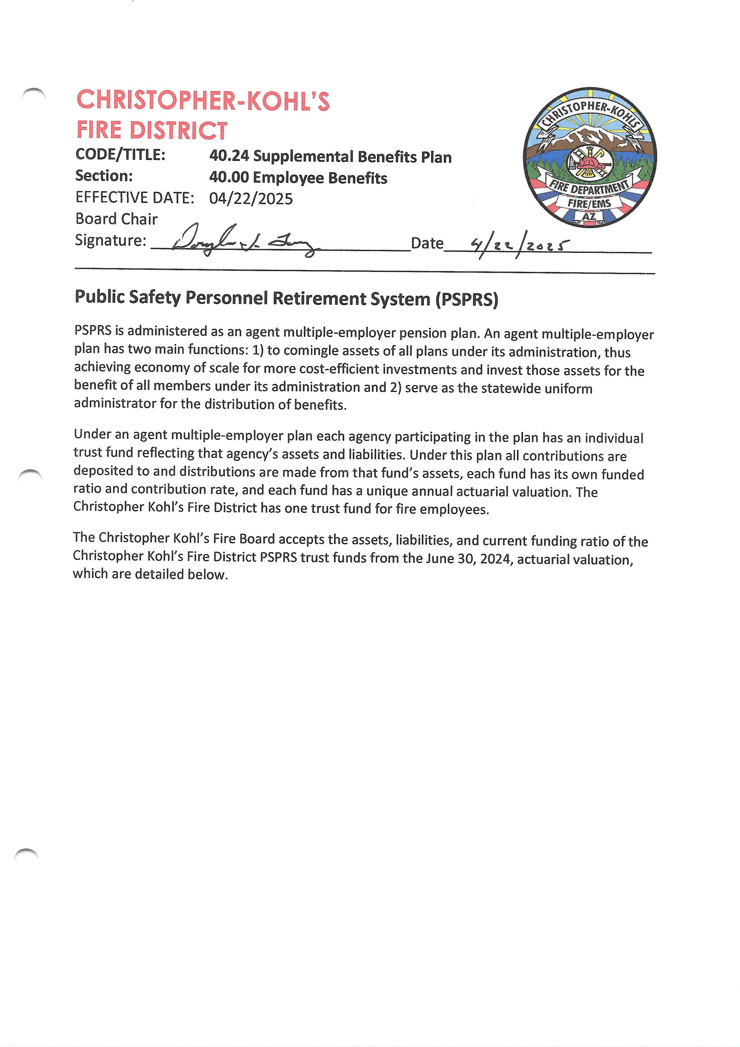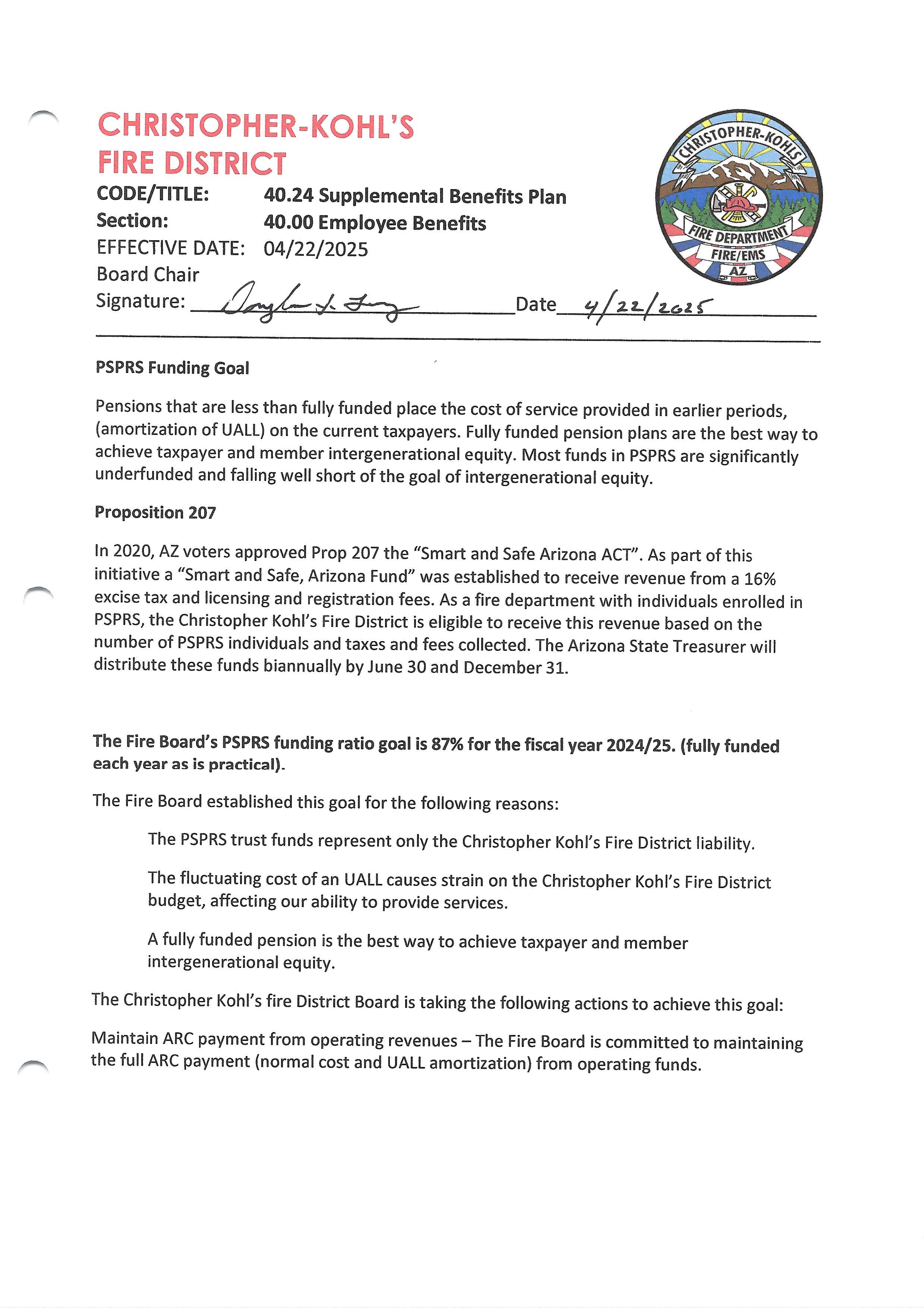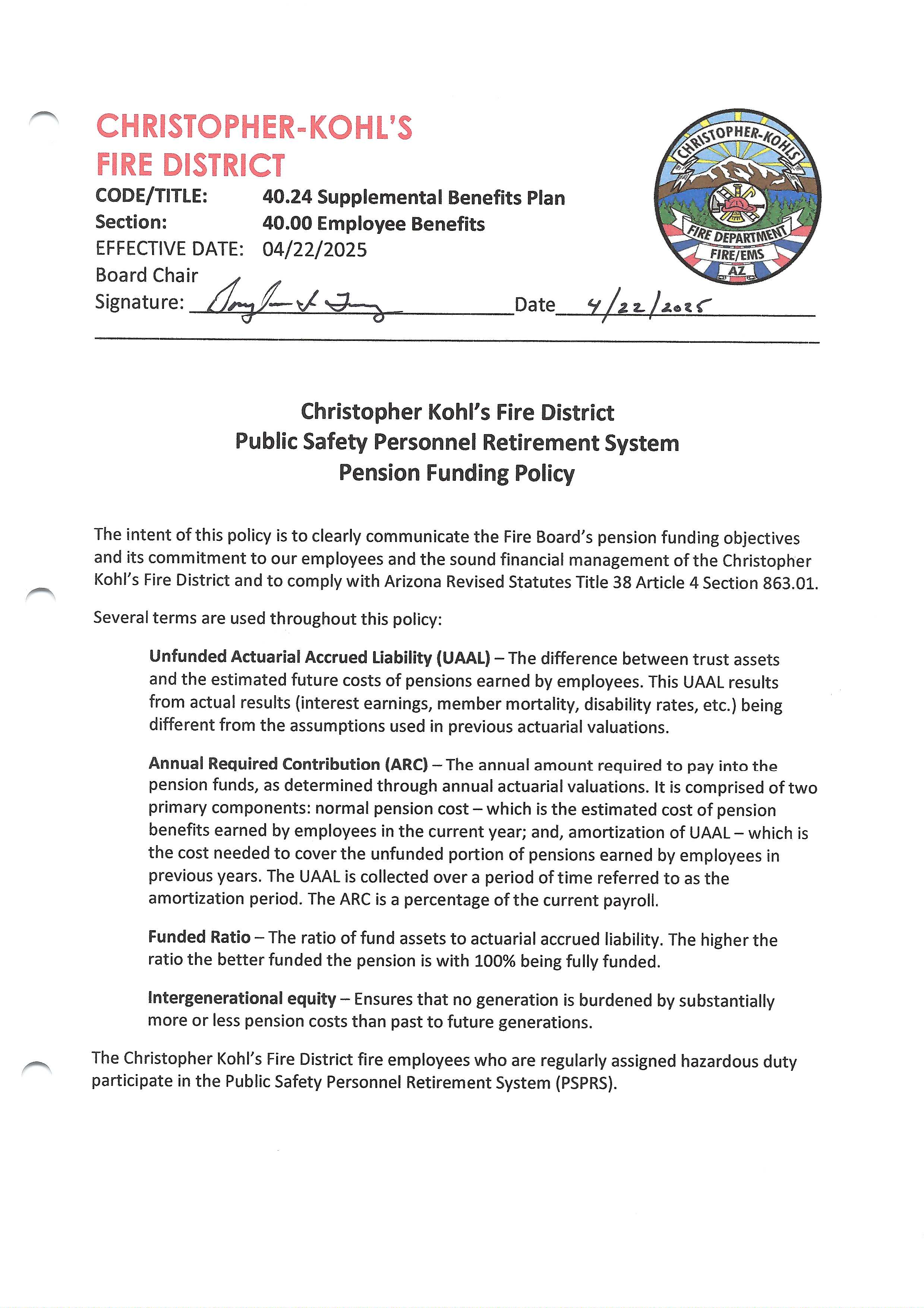 PSPRS Pension Funding Policy